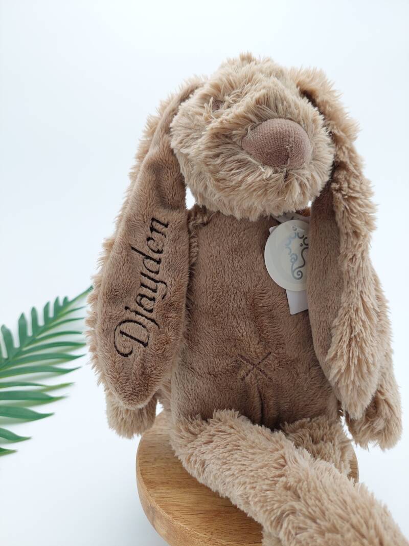 En dit is de mooie gepersonaliseerde knuffel voor Djayden! 🤎