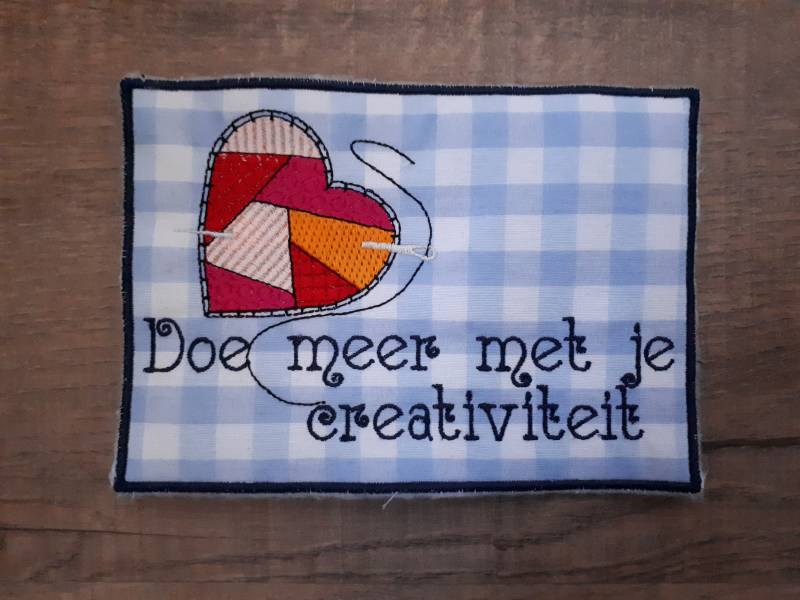 Vrijdagmiddag 16 februari heb ik deelgenomen aan een instructieles voor gebruik van het borduuronderdeel van mijn machine. Tijdens deze les heb ik onder andere geoefend met het positioneren van het werk, borduren zonder bevestiging in een borduur-ring (beter voor de stof), het rijgen van een kader en het maken van een border. Op de foto zie je mijn 'werkstuk'. Op de achterkant zit zachte fleecestof. Het was interessant, een goede oefening en ik kan weer vooruit! ☺