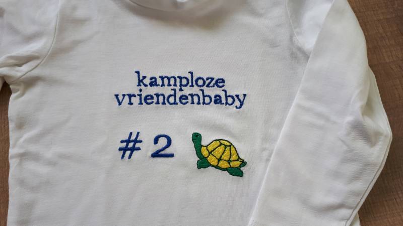 Een tijd geleden, maakte ik shirt #1. Toen met een koe erop. Dit is het shirt dat daarop volgt, nu met een schildpad. Iedere keer heeft het dier een bepaalde verbinding met de ouders. De ouders van #2 hebben een hele nieuwsgierige schildpad in de woonkamer wonen! 🐢 En papa, die dit shirt uit mocht pakken, zag er verrast uit! 😁