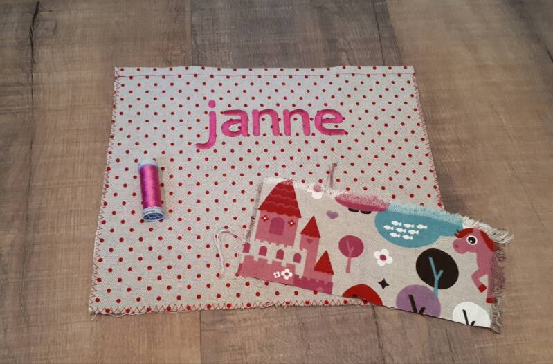 Pasgeleden kreeg ik de vraag of ik misschien een naam wilde borduren op een stofje als onderdeel van een tas. De stof werd per post naar mij verzonden. Eerst heb ik een aantal opties voorgelegd, denk aan de kleur, het lettertype, de grootte en de uitlijning. In overleg is het dit geworden! Ik ben benieuwd hoe de tas er straks uitziet en ik vind het leuk dat ik er aan mee heb kunnen werken! 😊