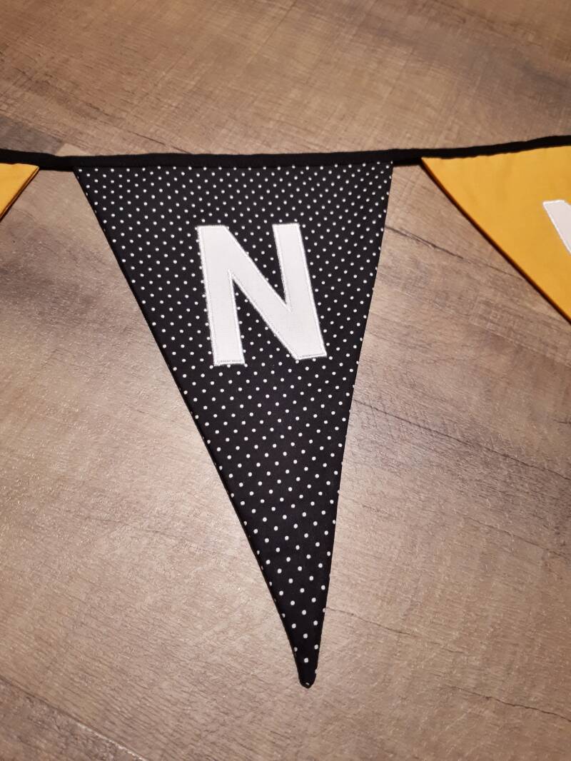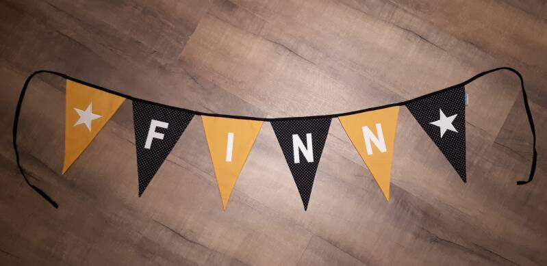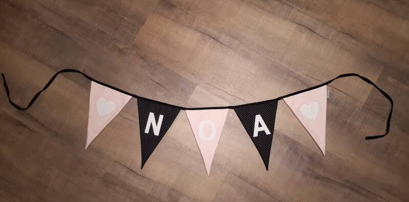 Ook deze keer weer de vraag of ik iets kon maken naar wens omdat het onvindbaar was in de winkel of op het internet. Nadat ik wist welke kleuren, letters, figuurtjes en grootte de naamslinger mocht krijgen, ben ik ermee aan de slag gegaan. Tussendoor heb ik een aantal foto's gestuurd om een update te geven of een vraag te stellen en dit is het resultaat! 😁 Interesse in een vlaggenlijn? Kijk dan in de webshop!