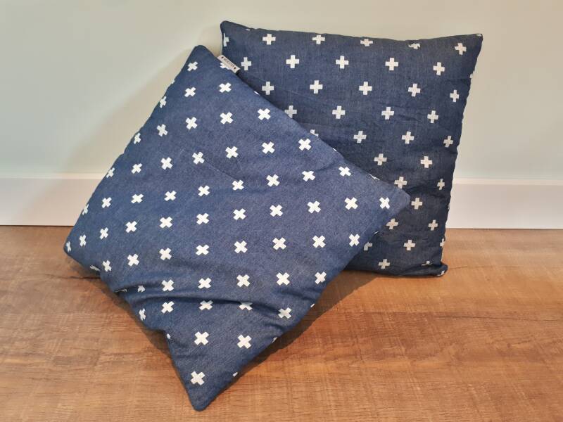 Deze kussenhoezen maakte ik op verzoek. De stof was al snel uitgezocht. Nu liggen ze mooi bij andere spijkerstof kussens op de bank! 🤩 Fijn om dit te kunnen maken. Natuurlijk zit er een rits in zodat ze eventueel gewassen kunnen worden!