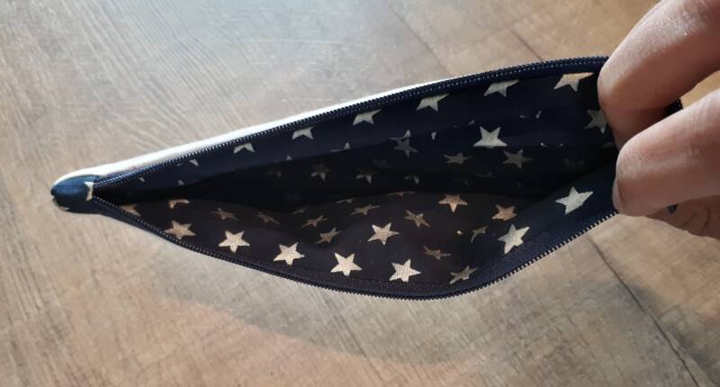 Juf Leontine heeft gewonnen met de winactie voor het persoonlijke etui. Ze heeft zelf de donkerblauwe stof met sterretjes als binnenstof gekozen 🤩