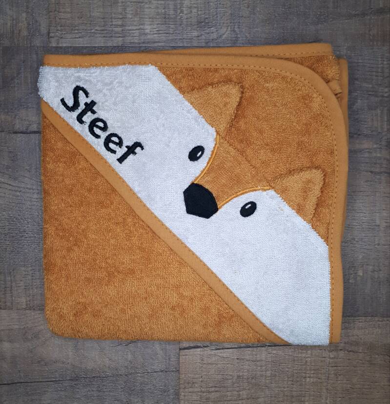 Deze leuke badcape mocht ik voorzien van naam! 🐾 Het ziet er super stoer uit! 😎