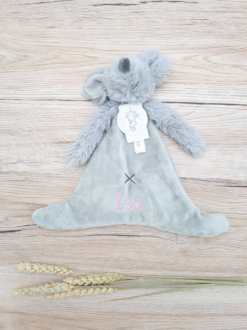 Tadaaa! Mouse (muis) Mindy 🐀 van het merk Happy Horse. Deze mooie tuttle knuffeldoek is voor baby Isa. Ik mocht de naam er op borduren. Nog maar net geboren en nu al zo'n mooi persoonlijk cadeautje! Van harte gefeliciteerd, mam en pap van Isa! Veel geluk! 🍀