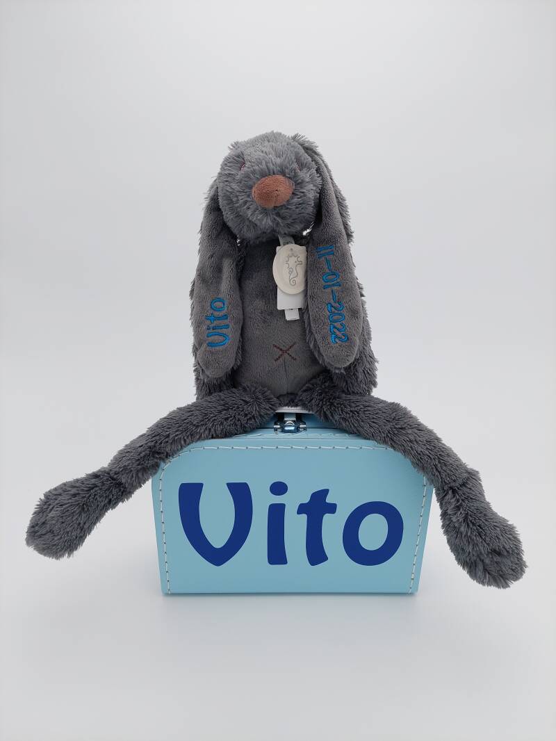 Ik heb vernomen dat het pakket bestaande uit het koffertje (gemaakt door De Leeuw Creaties) en het konijn van Happy Horse inmiddels cadeau gegeven zijn! Veel knuffelplezier, Vito! 💙