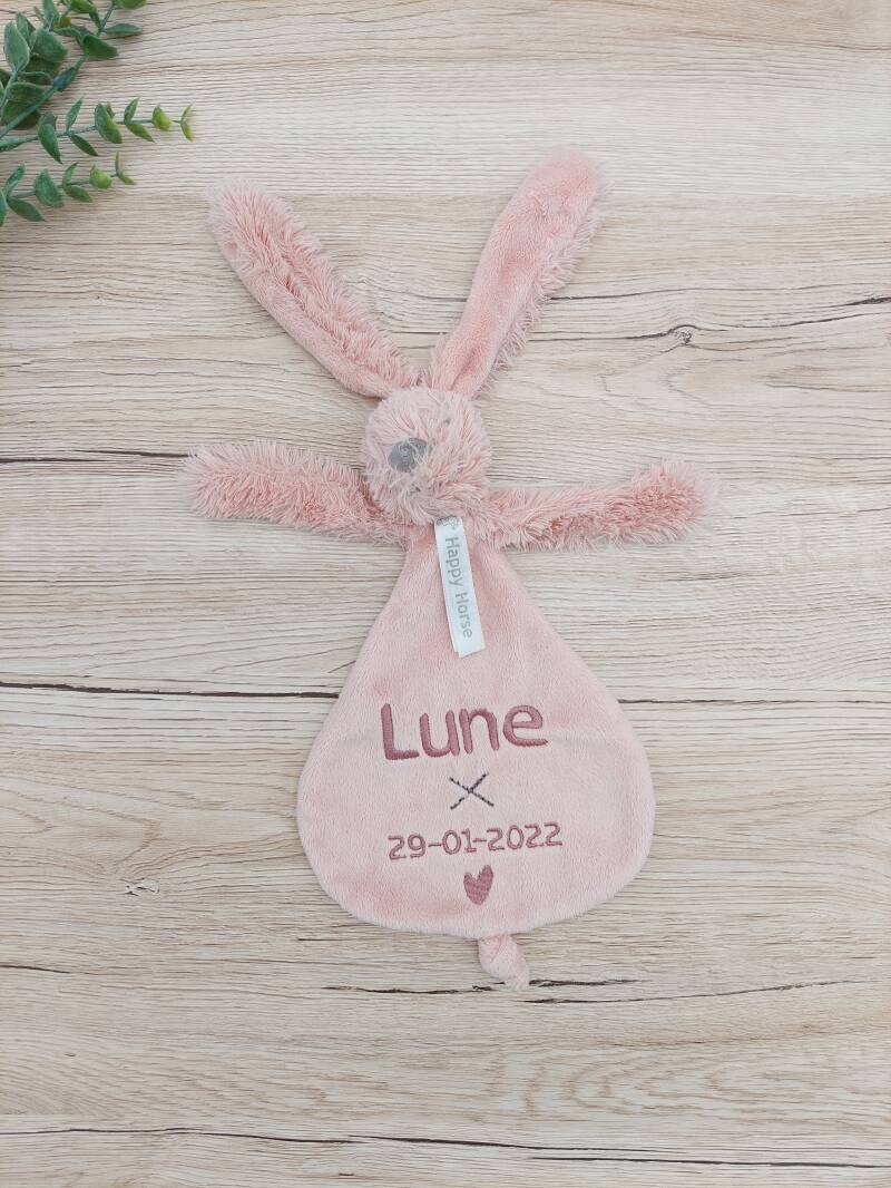 #naamborduren #borduren #knuffel #happyhorse #persoonlijk #lune #knuffelen #eigenknuffel #oudroze #vanwieisdezeknuffel #opvang #kinderopvang