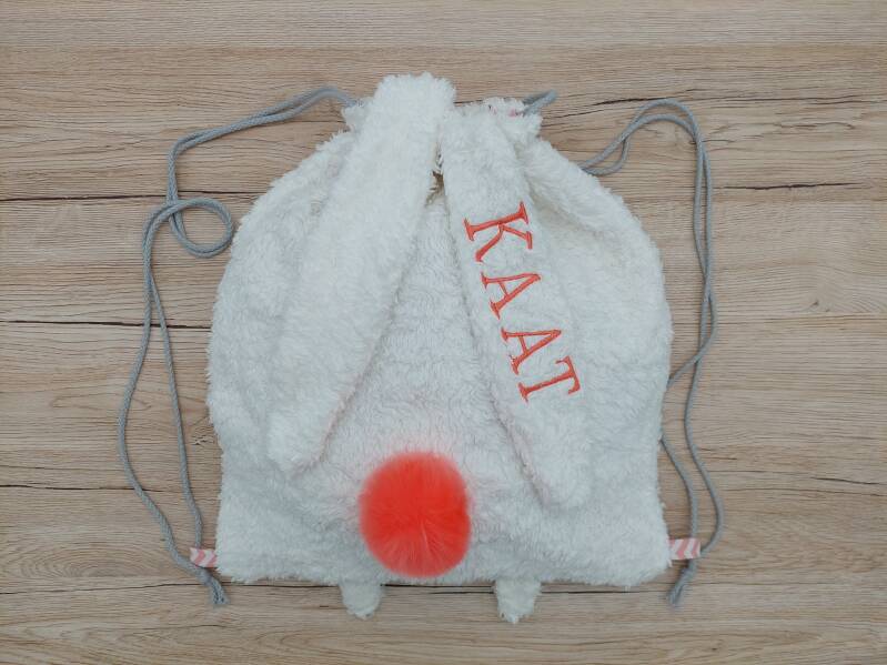 Kaat gaat haar konijnen rugzak gebruiken als gymtas in het nieuwe schooljaar. Ze is er blij mee! π