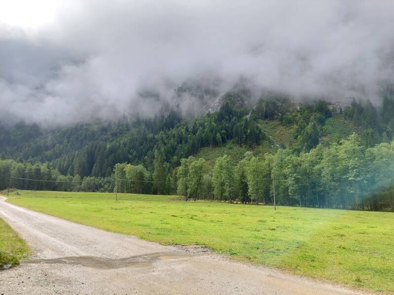 Aan de foto kun je wel een beetje zien dat we nog steeds in de wolken zitten. Erg vochtig, miezerig en ook wel fris.